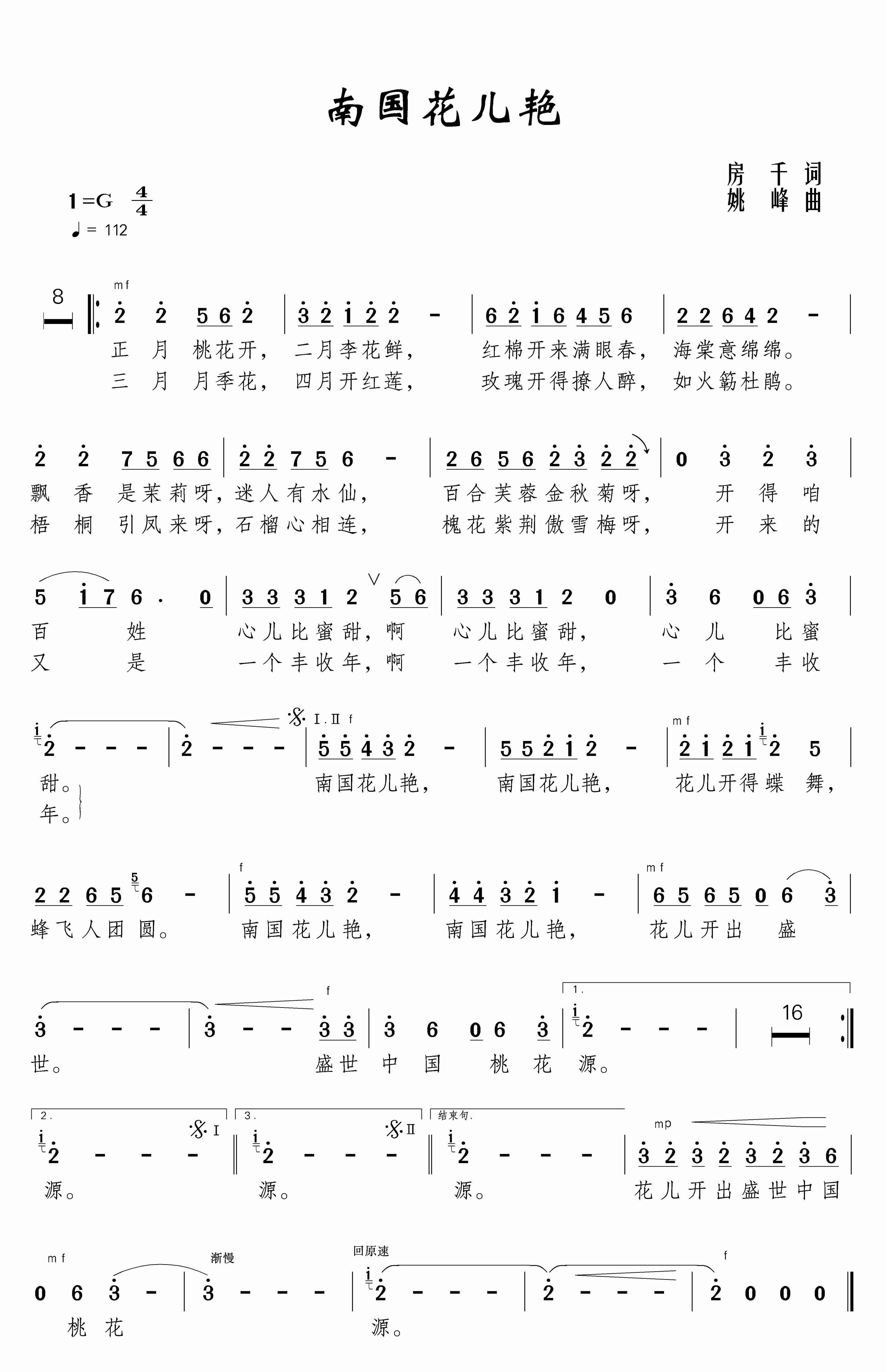 南国花儿艳 简谱 歌谱简谱大全